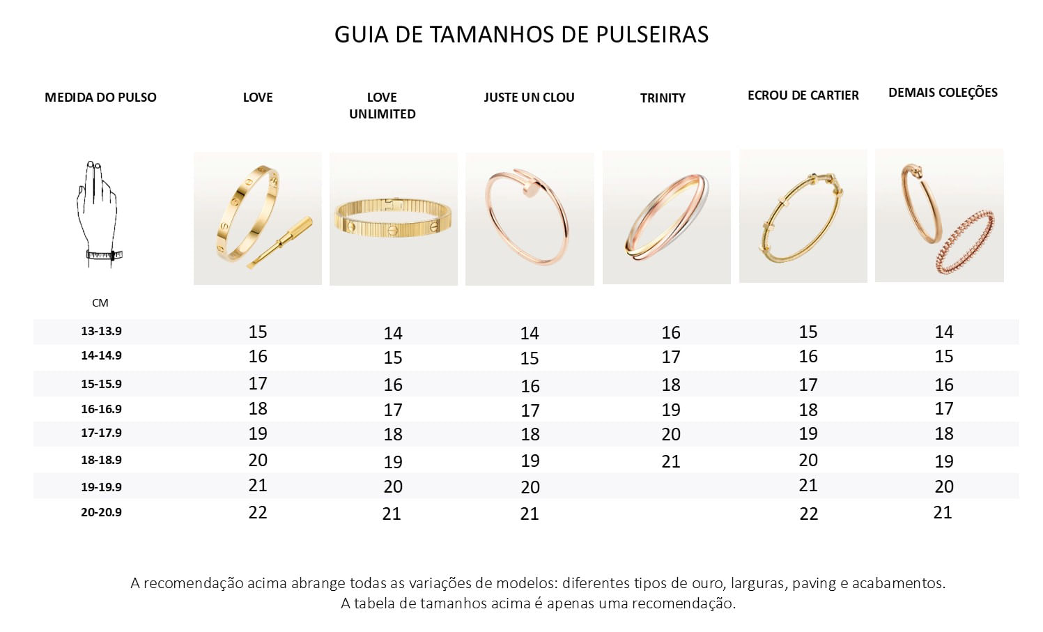 A pulseira LOVE tem sido um ícone de design da joalharia desde a sua criação em Nova Iorque em 1969. Está disponível em três tamanhos: pequeno, clássico e médio. Unidos pelas suas linhas puras, proporções exatas, forma oval idêntica e detalhes requintados, os três modelos podem ser usados sozinhos ou em conjunto.