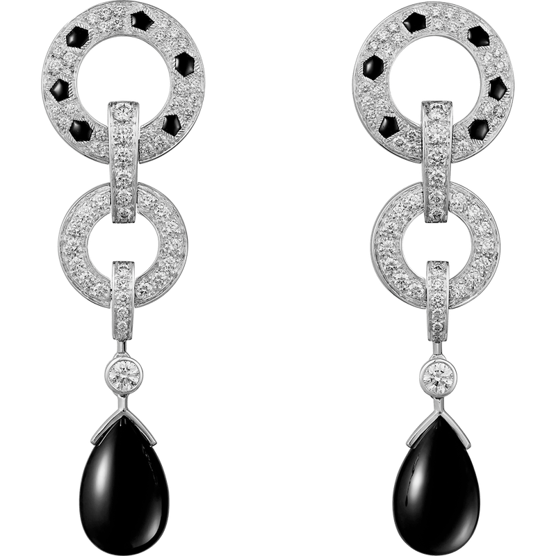 Brincos Panthère de Cartier, ouro branco 750/1000, cada um com 6 manchas de ónix, pedra de ónix e 54 diamantes de corte brilhante totalizando 1,11 quilates.