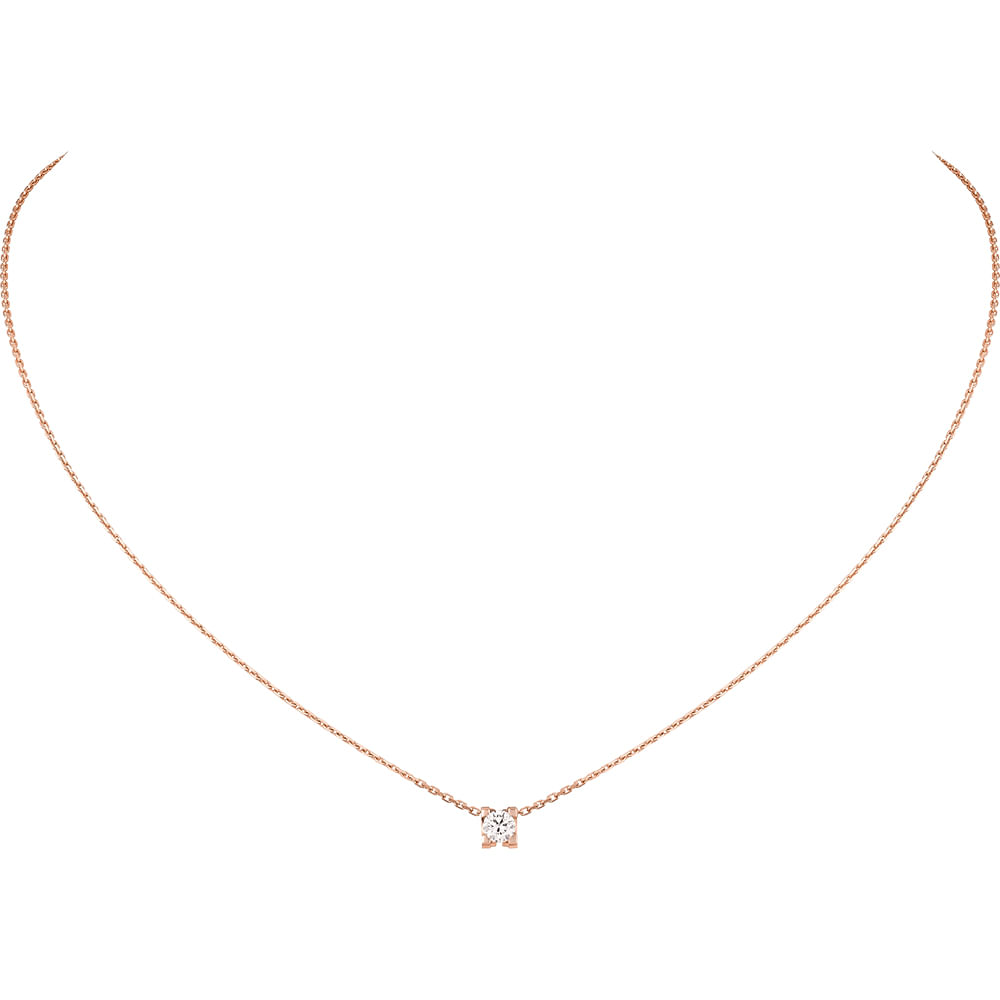 Colar C de Cartier, ouro rosa 750/1000, com um diamante de corte brilhante disponível de 0,18 a 0,34 quilate, 0,50 a 0,79 quilate e 1,00 a 1,99 quilate.